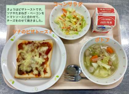 ツナやたまねぎ・ベーコンなどの具をトマトソースと合わせて、