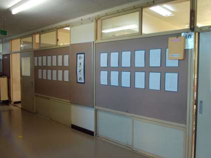 昨日から20日(月)までの期間、校内書初め展を行っています。廊下の掲示板には、子どもたちが一生懸命に書いた書初めの作品が並んでいます。今日は早速、校内の作品を見て回り、気付いたことや好きな作品を記録する活動をしていました。各学年・学級の作品を見て、下級生の成長を知ったり、上級生の作品にあこがれたりと、学ぶことも多いようです。