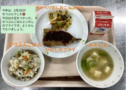 鶏肉や油揚げと一緒に大豆と枝豆を甘辛く味つけして、