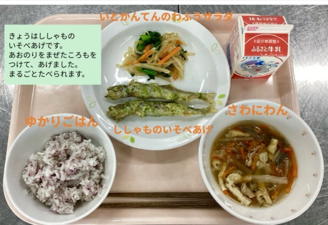 頭からしっぽまで丸ごと食べられるので、魚の栄養がしっかり取れるメニューです。