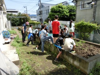 今日は、講師の先生と「謎の種」を畑に蒔きました。