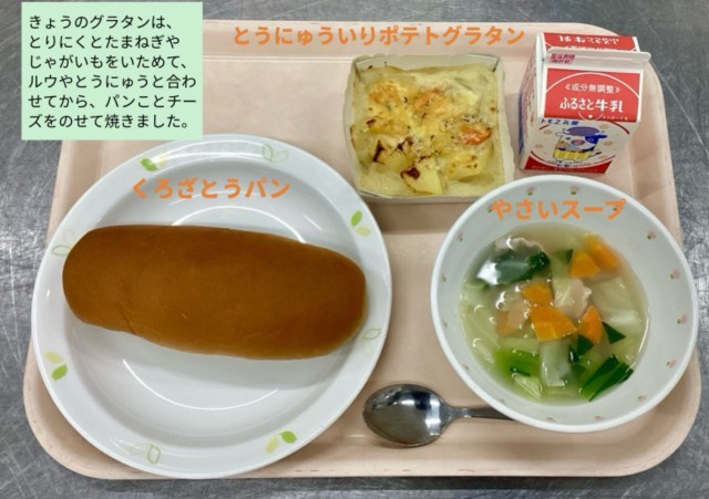 今日のグラタンは、鶏肉やたまねぎ、じゃがいもを炒めて、ルウや豆乳と合わせてから