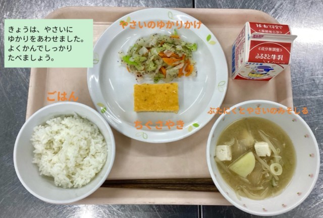 ごはんに混ぜることが多いゆかりですが、今日は野菜に混ぜました。