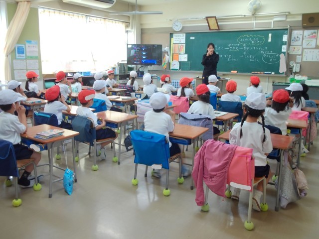 今日は、朝の時間に、生活指導主任の教員から、全校児童に向けて交通安全指導を行いました。登下校は、通学路を守ること、歩道や白い線の中を歩くこと、広がって歩かないこと、走らずに歩いて登下校すること、交差点ではいったん止まることなどを話しました。命を守る学習です。これらの話を受け、1年生は各学級でも再度担任より確認をしました。毎日、安全に登下校できるよう今後も指導していきます。