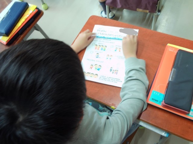 今日は全校朝会の日です。6年生の挨拶では、「水泳学習が始まるので準備をしっかりしましょう」と呼びかけてくれました。5月に続き、校長講話は「子どもの権利」についてです。「わたしのいもうと」(偕成社)という絵本を読み聞かせました。内容は悲しい「いじめ」のお話です。自分に「権利」があるように相手にも「権利」があることを伝え、お互いの権利を大切にすることが大切であると話しました。そんな素敵な未来社会を作っていけるといいですね。全校朝会後には、各学級でワークシートに取り組み、担任と一緒に「権利」について考えました。