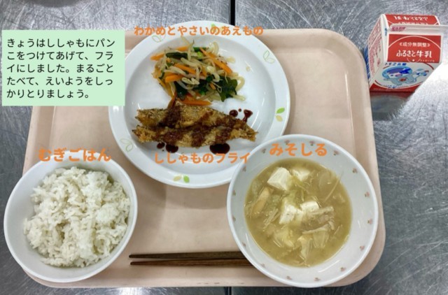 今日はししゃもにパン粉をつけて揚げて、フライにしました。