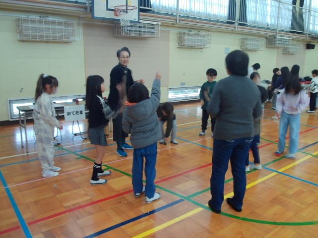 今日は、地域の方々がゲストティーチャーとして来てくださり、1年生と2年生が昔遊びを教わりました。羽子板やあやとり、竹とんぼにおはじきなど、様々な遊びをご準備くださり、グループごとに決められた時間で交代しながら活動しました。どの遊びのコーナーでも、生き生きと活動する1年生と2年生の姿が印象的でした。実際の道具に触れながらの遊びは、非認知能力の育成にも大きくかかわります。