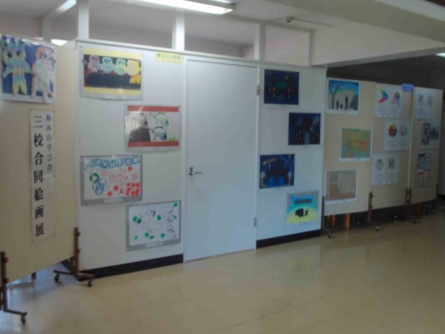 今日から1月31日まで、3校合同作品展を開催しています。東玉川小学校の児童、奥沢中学校の生徒、奥沢小学校の児童の作品が並びました。作品での交流ができるのも、和みの学び舎のよさですね。
