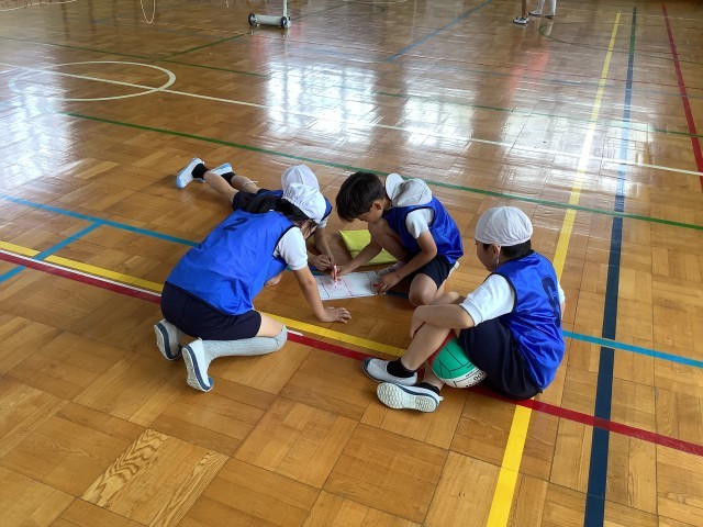 3年生のキャッチバレーはいよいよ最終戦を迎えました。サーブや、キャッチ、パスなどの技術が高まり、作戦の幅が広がりました。「このチームはキャッチが上手いからここを狙おう。」や「サーブが上手いからみんな広がってキャッチできるようにしよう。」など、どのチームも協力して作戦を立てていました。ゲーム中には、友達のプレーに対して、「ナイス!」や「大丈夫、まだ逆転できるよ!」などのあたたかい声援もありました。