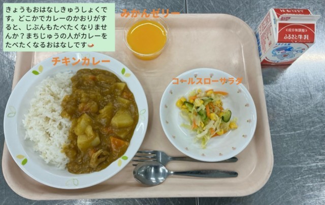 今日は給食室からずっとカレーのいい香りが校内に漂っていました。