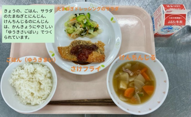 野菜は、北海道産のにんじんと玉ねぎを、サラダやけんちん汁に使用しました。