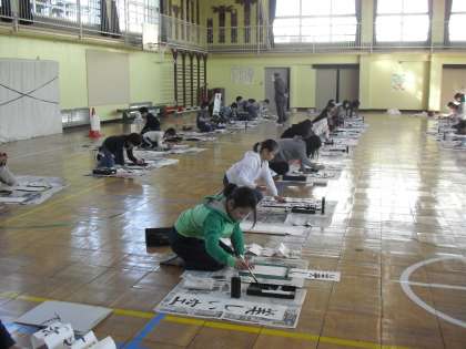 墨の香りがほのかに漂い、子どもたちの新年の決意や意欲を感じさせる書き初め大会となりました。