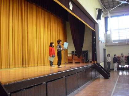 校長先生のお話のあと、「代表児童の言葉」では2年生の2人が話しました。2人とも目標をしっかりもってがんばっていくという決意が表われていました。