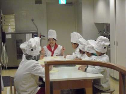 子どもたちは混ぜ合わるとき、空気を入れるようにきめ細かくかきまわしていました。