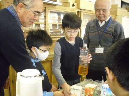4年生は、環境学習の一環として「廃油から石けんを作ってみよう」ということに取り組みました。