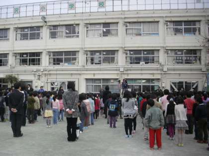 朝からたくさんの人で賑わっている奥沢小学校です。 -