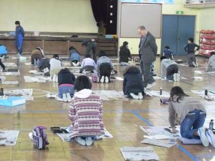 会場の体育館は暖房がないので、本当に冷えるのですが、子どもたちは気持ちをこめて一字一字丁寧に書きました。
