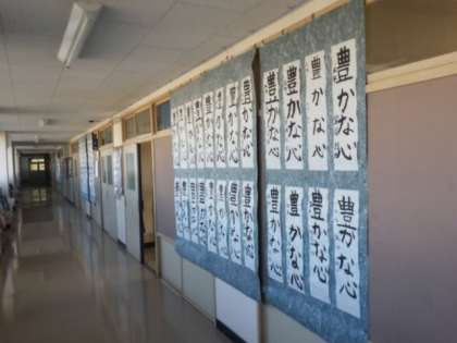 子どもたちの書き初めの作品を、各教室前の廊下に掲示しています。力強い作品が並んでいます。