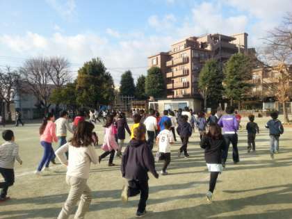 1月から3月の朝は、低学年が火曜日に、高学年が金曜日に、自分のペースで校庭を走ります。この取組の成果が、春の体力調査であらわれています。自分で今日の目標をきめて、無理のない速さで続けて走ることを目指しています。