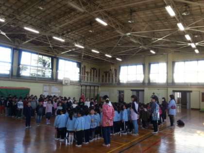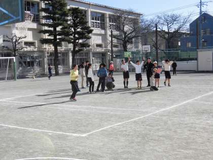 本日(1月22日金曜日)の昼休み、縦割り班遊びが行われました。3学期は、これまで中心になってがんばってきた6年生から、来年度最上級生となる5年生にリーダー役を引き継ぎます。張り切って取り組む5年生、身振り手振りで具体的に遊びの説明を行うグループも多く見られました。そんな5年生を、やさしく6年生がサポートしていました。