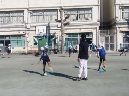 プロ野球チームの普及コーチの皆さんを講師として、4年生を対象にティーボール教室を行いました。特別な技能を身に付けなくても、今、もっている力で楽しむことができるゲームの仕方を教えていただき、みんなで楽しく、得点を競い合いました。