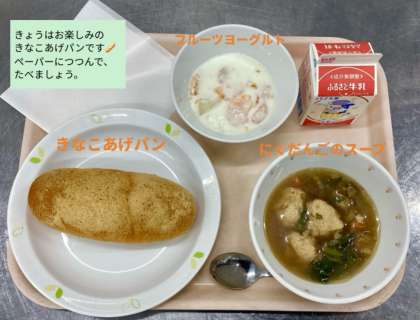今日はお楽しみ献立の揚げパンです。揚げパンは、昔、