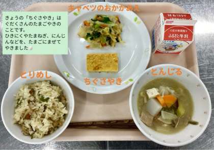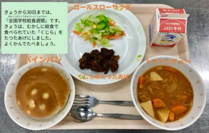 今日はくじらを使った献立です。昔の給食では、肉の代わりにくじらが