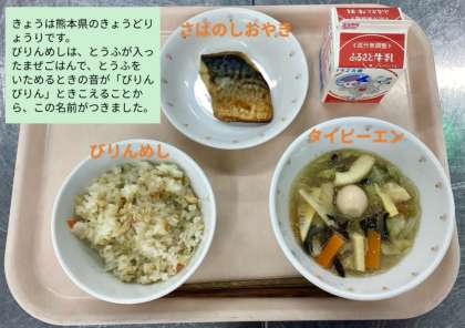 今日は熊本県の郷土料理です。びりんめしは、豆腐が入った