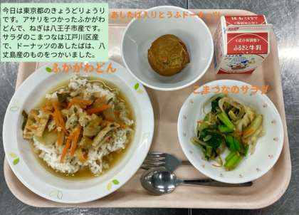また、サラダの小松菜は江戸川区産、ドーナッツのあしたばは、