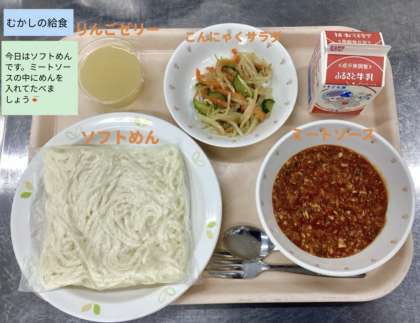 今日は、昔よく食べられていたソフトめんです。ソフトめんは、蒸して