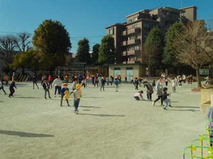冬らしい晴天が続き、陽気に誘われて子どもたちも外遊びを楽しんでいます。体育で学習しているなわとびに挑戦する児童も増えてきました。その他にも、おにごっこやボール遊び等、それぞれが好きな遊びに夢中で取り組んでいます。昨年度、高学年児童が、安全に外遊びができるよう考えた、遊びの「住み分け」を今年度も受け継ぎ、校庭を上手に分けて使っています。