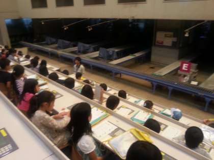 世田谷市場では、卸売り場の見学やクイズを通して、野菜や花の流通を学びました。特殊車輌のデモンストレーションも見学しました。