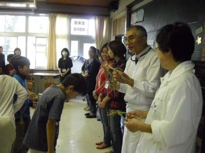5年生は総合的な学習「米づくり」のまとめに、収穫祭を行いました。