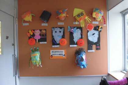 つくし学級の児童たちがかわいいお化けを作成していました。 -