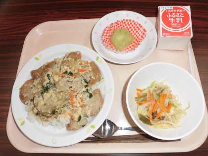 宮城県の郷土の食材「油麩」をつかったどんぶりと郷土菓子「ずんだもち」でした。