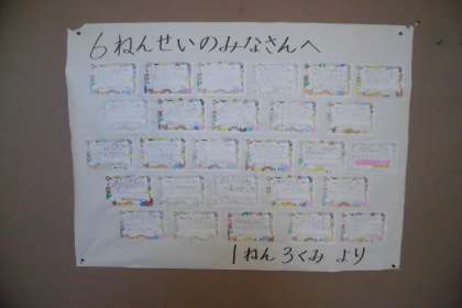 6年生の廊下には、卒業までにしたいこと、奥沢発表会の1年生からのコメントなどが掲示され、一つ一つが充実した生活となっている様子です。 -