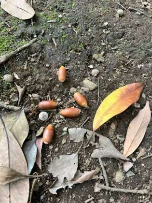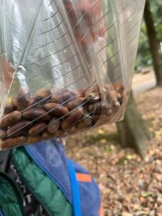 クヌギやマテバシイなど、色々などんぐりを拾いました。 -