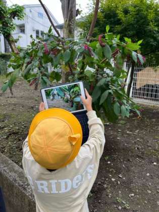 自然体験ゲームでは、葉っぱのレントゲンや自然のかくれんぼをしました。