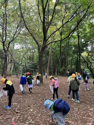 自然体験ゲームやどんぐり拾い、自由遊びなど、今日は縦割り班での活動が中心となりました。