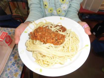 1年生が選んだ本の中に出てくるこまったさんのスパゲティです。