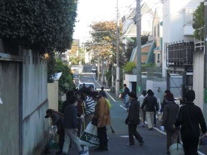 今朝の6年ボランティアは12名、会の用意した掃除用具を使って、落ち葉などを集めました。