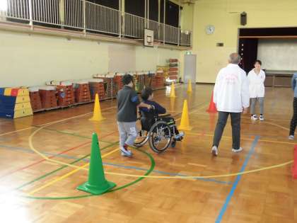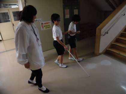 社会福祉協議会の方々のご指導により、昨日(11/21)は白杖体験、本日(11/22)は車いす体験を行いました。障害のある方々の大変さを身をもって体験することにより、日頃具体的にどのように支援をすればよいかをはじめ福祉の大切さを学ぶよい機会となりました。大変な方を見かけたら進んで手助けすることや、日頃の思いやりある行動にまでつながってほしいと考えています。