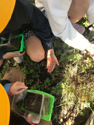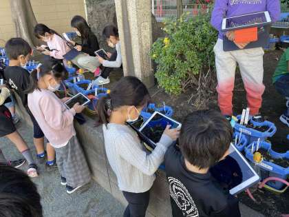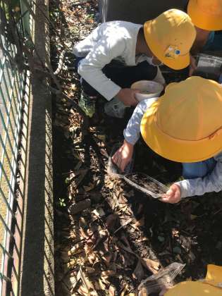 休み時間の度にケースを覗いて、大切にお世話をしてきたダンゴムシ。冬は冬眠すること、寒くなると動けなくなることを知って、動けるうちに仲間のところに戻してあげようと決めました。「春になったらまた会おうね。」と話しかけながらそうっと土の上に置いたり、近くに餌の枯葉を置いたりしていました。小さな生き物に対する優しい気持ちが伝わってきました。