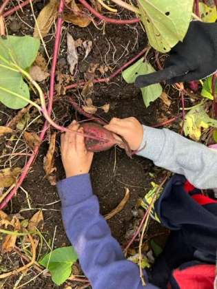 今後、収穫したさつまいもは絵に描いたり、長いつるでリースを作ったりします。 -