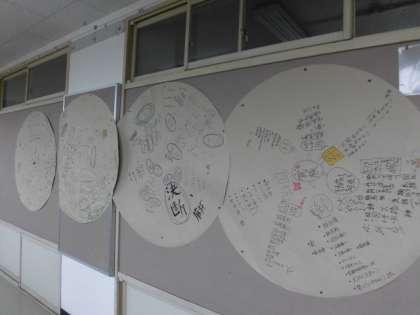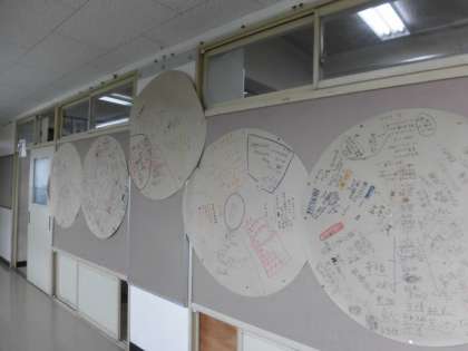 六年生の廊下には寄せ書きのようにみんなのおもいが携示されています。