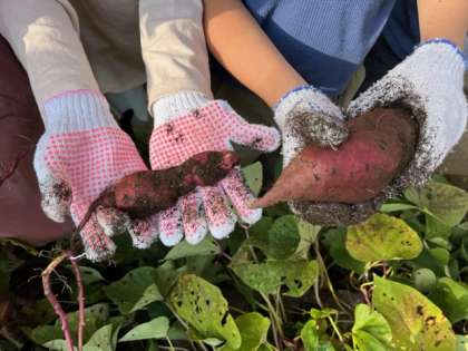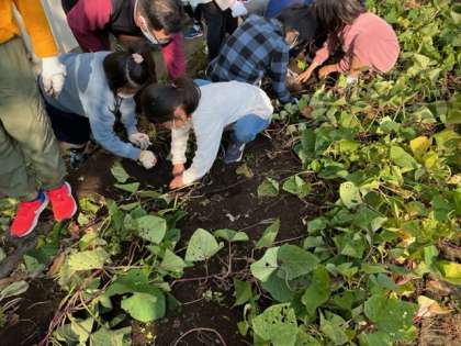 たくさんのつるをかき分けて、土の中からおいもを見つけたときは大喜び!