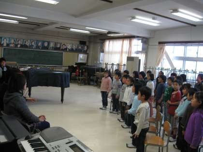 曲目は「ふるさと」「すてきな友達」でした。5年生の素敵な歌声が体育館に響き渡り、全校児童だけでなく、後ろで見てくださっていた保護者の方々からもたくさん拍手をいただきました。「すてきな友達」を伴奏に全学年が退場していきましたが、最後には手拍子もおこり、素敵なひとときとなりました。