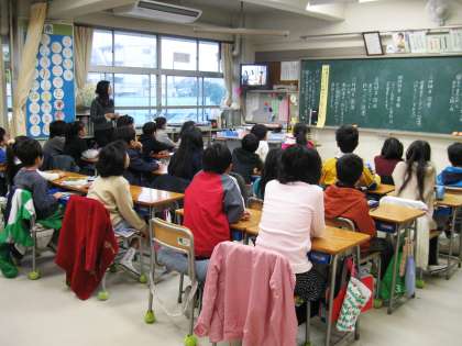 教室の子どもたちは、どの教室も真剣に見ていました。