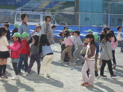 次に校庭で、かけっこをしたり、なかよくなる踊りをおどったりしました。