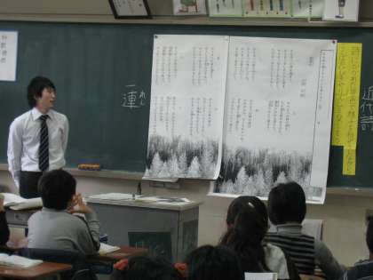 12月9日(水)の午前、年間を通して週1回(もっと多い時もあります)、本校で実習を行っている教師養成塾の塾生の研究授業がありました。これは毎月1回行っているもので、東京都教職員研修センターの先生が来校し、指導してくださいます。